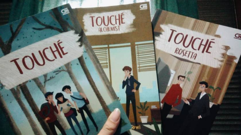 Seperti yang bisa dilihat dari cover, saat ini ada tiga buku dengan urutan judul Touché, Touché Alchemist, and Touché Rosetta, ber-genre crime, mystery, fantasy, dan tak ketinggalan bumbu romance ala remaja. Meski membawa genre yang cukup berat, ceritanya tetap mudah diikuti. Sejujurnya, plot di tiap buku mirip, tapi tetep menarik karena karakter dan latar belakang ceritanya berbeda (there’s recurring characters too!).